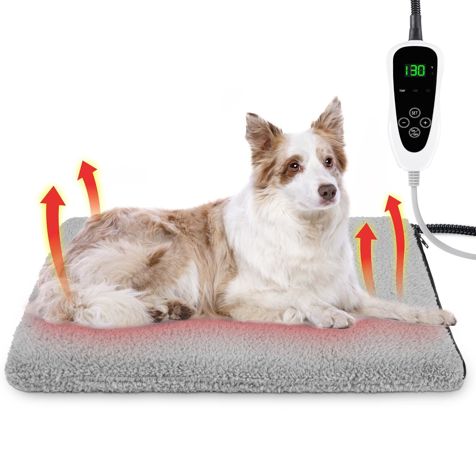 [11 Levels Temperature Adjustable]Our pet heating pad can adjust the temperature easily with 11 temperature settings ( 80-130℉/27-55℃). The upgraded heating wire is denser, heats faster (within 5-10 minutes), and is evenly heated. Built-in dual temperature sensor accurately monitors temperature to prevent overheating, Let your pets a warmer and safer winter.