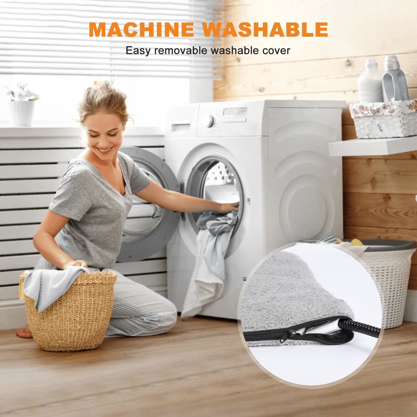 [Soft & Cozy Sherpa Fleece Cover]The cover of this pet heated mat is made of 100% microfiber, soft and cozy is like lying in the clouds, warming pet body. The cover is equipped with a zip that allows the cover to be easily removed and machine washed. No matter how many times you wash, this cozy and plush Sherpa Fleece Cover is shrink resistant and not pilling.