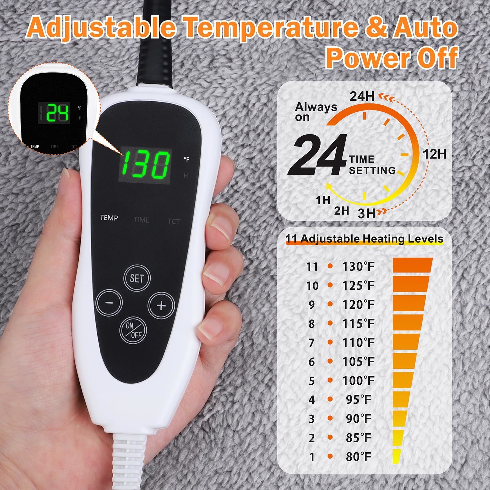 [Always Keep the Temperature]When you don't turn on the timer function, the heating pad will activate the default setting to always maintain the right temperature.