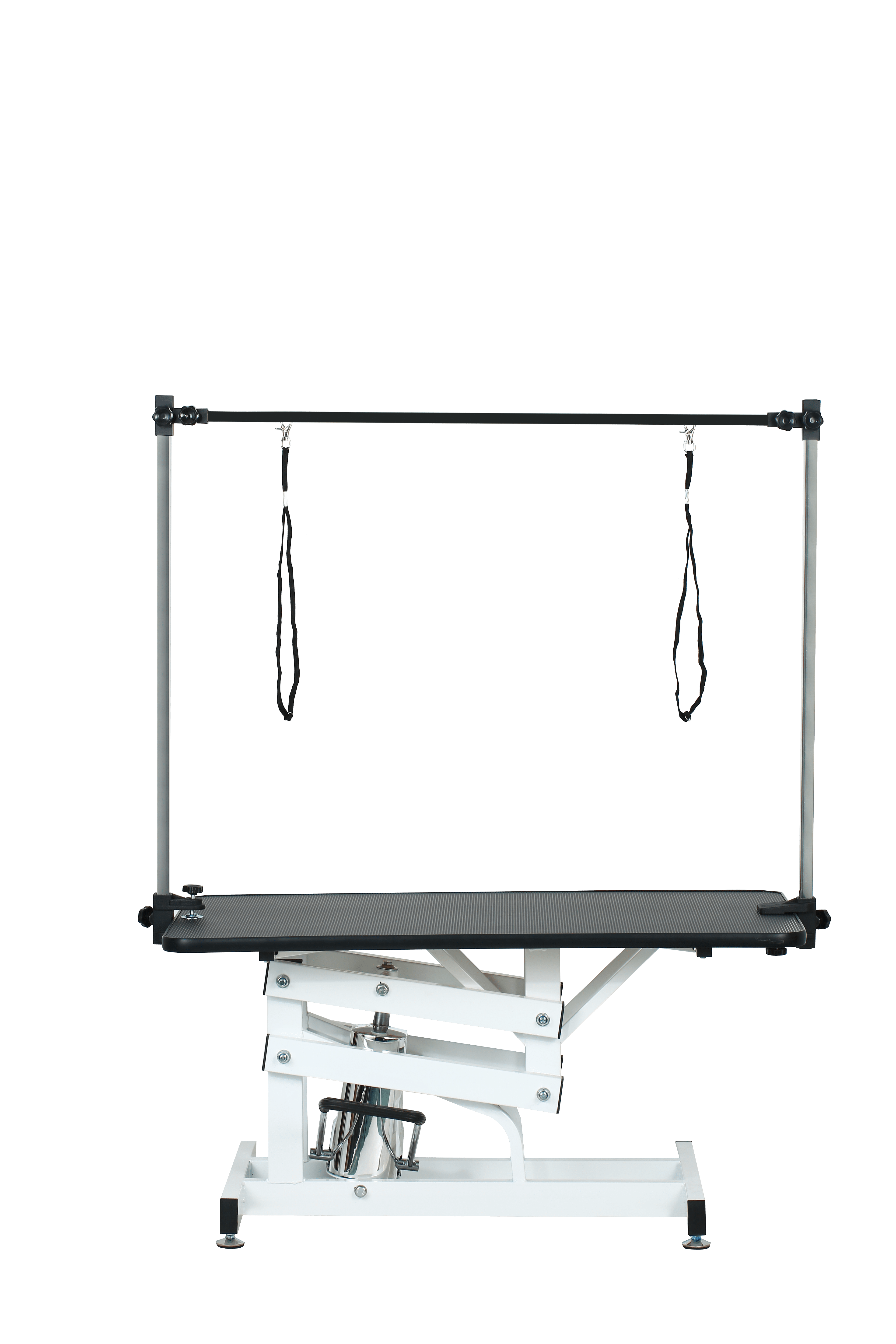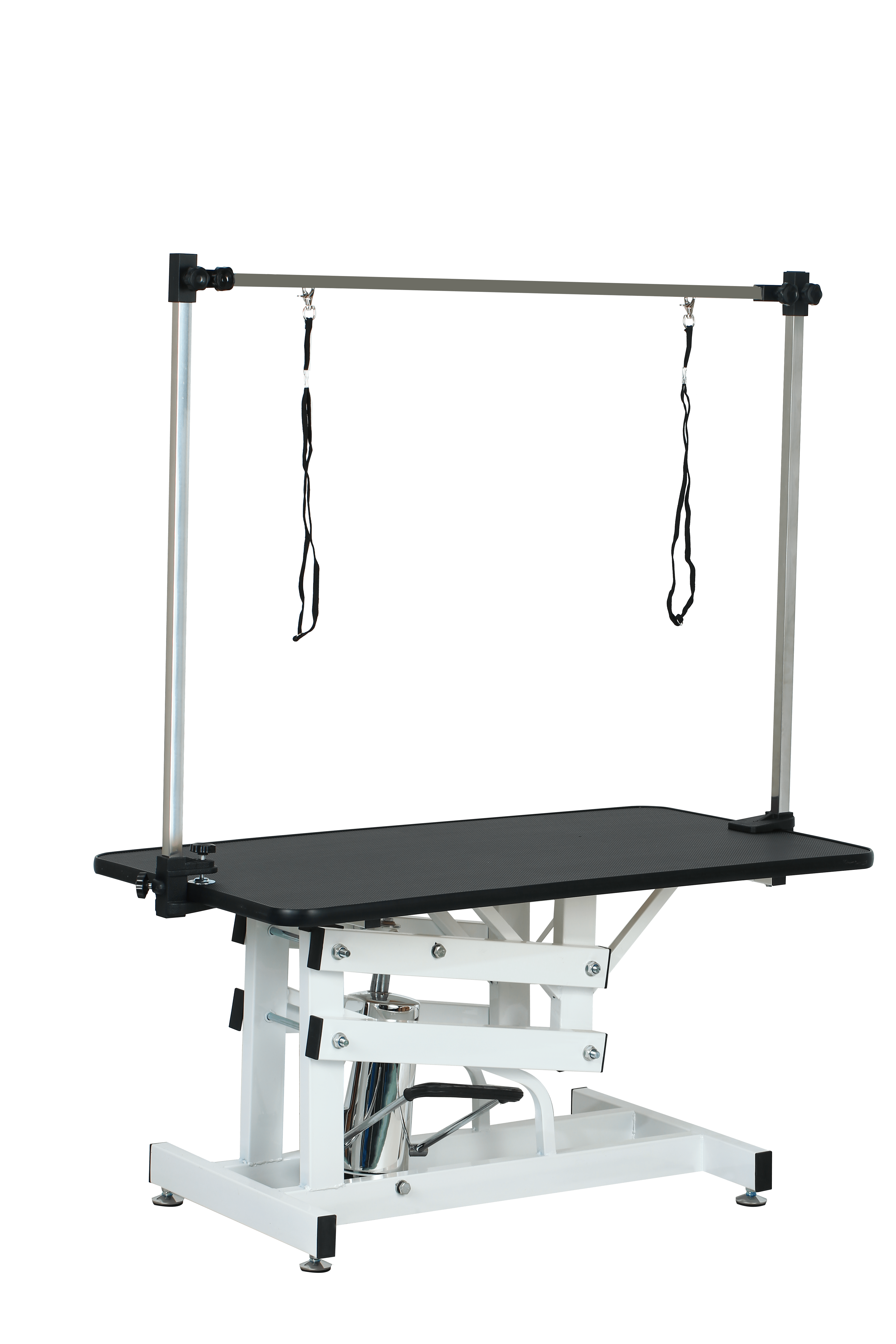 Why You Need a Folding Pet Grooming TableIf you have a pet, it's necessary to trim the pet hair, so what we are going to recommend to you is this GT-101 Adjustable Heavy Type Hydraulic Grooming Table. This hydraulic grooming table is made of high quality steel frame, MDF board and PVC surface mat, which is sturdy and durable. This table is adjustable, and you can adjust to the most suitable height for groomer. And the attached necklace is convenient for you to fasten the pet. It has a strong bearing capacity of 50-60kg, which is reliable. So don't hesitate, just buy it!
