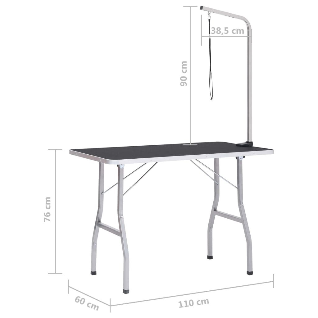 This pet grooming table is supported by steel legs, making it stable and sturdy. The large non-slip tabletop creates a comfortable surface for your pets to stand on. Additionally, the stainless steel grooming arm is height adjustable. So, you can adjust in a perfect height to suit you and your pet's size. The table is foldable, which is ideal for mobile pet groomers and home use as it is easy to store. What's more, the round corners prevent injury.Color: Black and silverMaterial: Stainless steel, steel, Engineered wood, rubberTable dimensions: 31.9" x 19.1" x 31.5" (L x W x H)Loop frame size: 11.4" x 29.1" (W x H)With 1 matching grooming loopFoldable for easy storageAssembly required: Yes